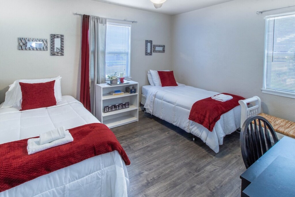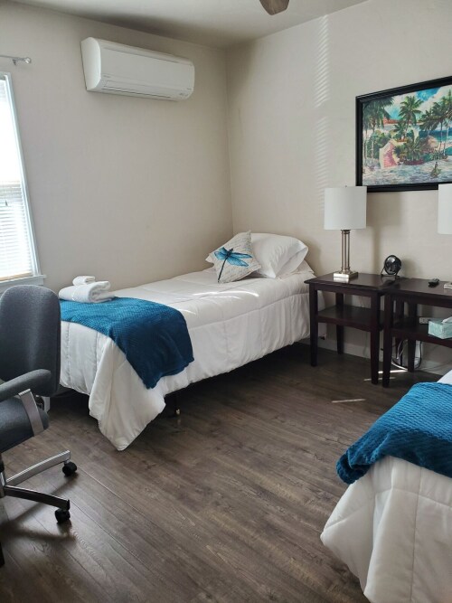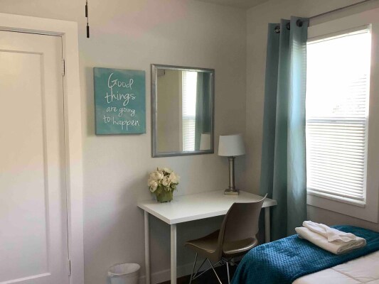 A cottage feel is what you get when first entering the home. Just enough room for a small family or a few friends who want the comforts of home. Especially a comfy couch and big TV. 1 king bed, and 2 twin rooms, all comfortable is a good feature too. Most of the beauty of Redding is not in a house though, its encountering the beauty of nature that the town has to offer. Plus all the unique coffee shops and eateries.